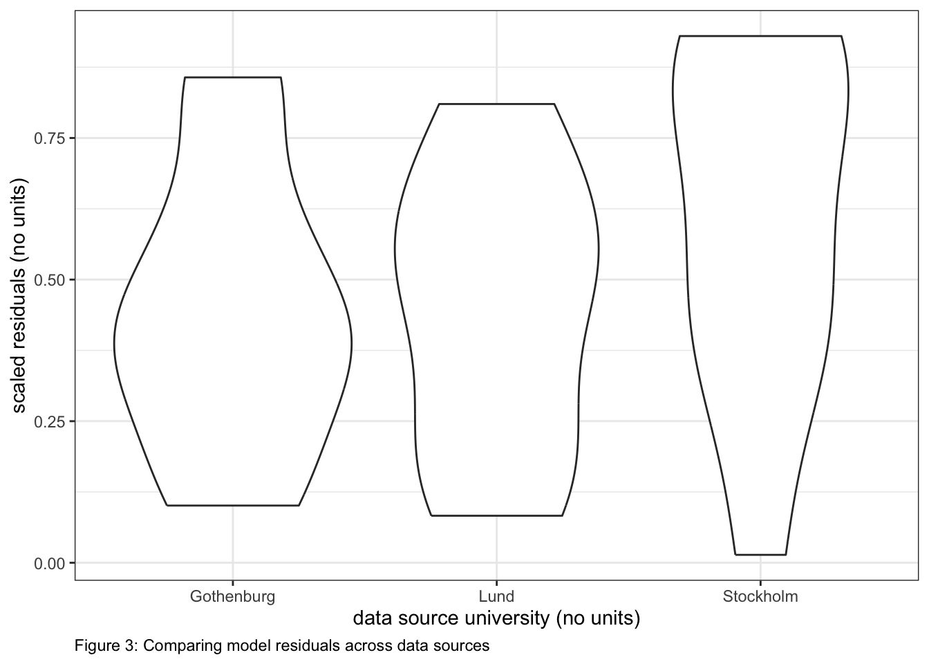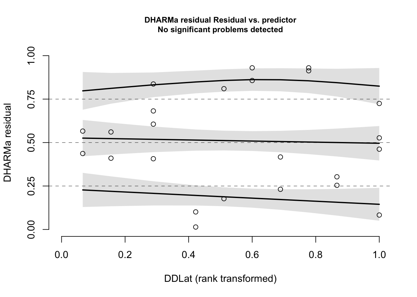 The remaining unexplained deviance may be due to other factors affecting growth rate such as winter harshness, food availability, etc. Note that I was not able to include minimum winter temperature in my hypothesis test due to high colinearity between latitude and minimum winter temperature. Therefore, I do not know if the measured latitudinal effect on growth might mechanistically be due to winter harshness (here estimated as minimum winter temperature). This could be tested if I was able to expand my data set to include sites where latitude and minimum winter temperature were less correlated… [discussion on other, untested factors that may be responsible for the unexplained deviance].