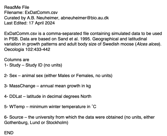 Here I want to explain variability in growth rate in moose (Alces alces). Moose size will be related to survival rates, and likely also their ability to reproduce (e.g. [@SandEtAl1995]). Being able to explain what controls growth rates in moose may help us explain why some populations are more productive than other populations, and it will help us predict productivity for populations at other places or times.