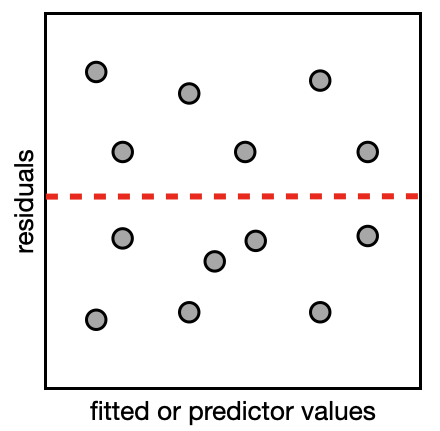 For this assumption, you need to look at how your residuals are scattered around your model fit. If your model is a useful one (“well-specified”), the scatter of those residuals will be even and uniform around the fit (“a uniform cloud”). You can inspect your residuals in this way by plotting the residuals vs. the fitted values.