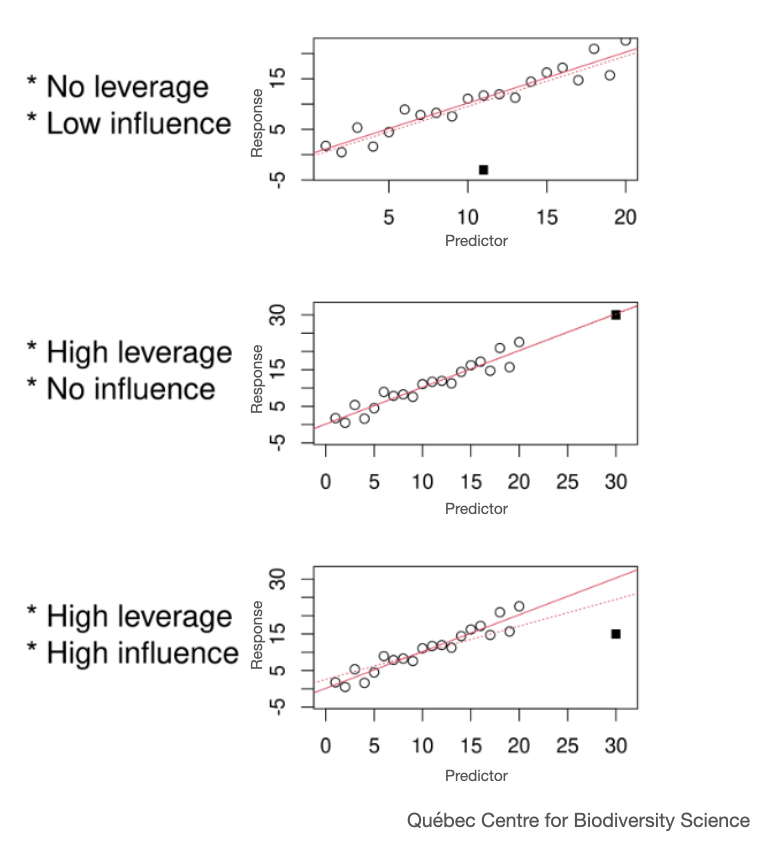 If your model residuals are not behaving as expected, you should first address any outlier problems. Explore the observations labelled as outliers and see if they should be kept in your data set. Outliers can be described in terms of their leverage and influence. A high leverage data point inflates the strength (certainty) of your modelled effects. This may or may not be classified as an outlier but should be explored for how it is influencing the strength of your modelled effects. On the other hand, an influential data point changes the estimate of your model effects (coefficients like slope and intercept) and may reduce the strength of your modelled effects.
